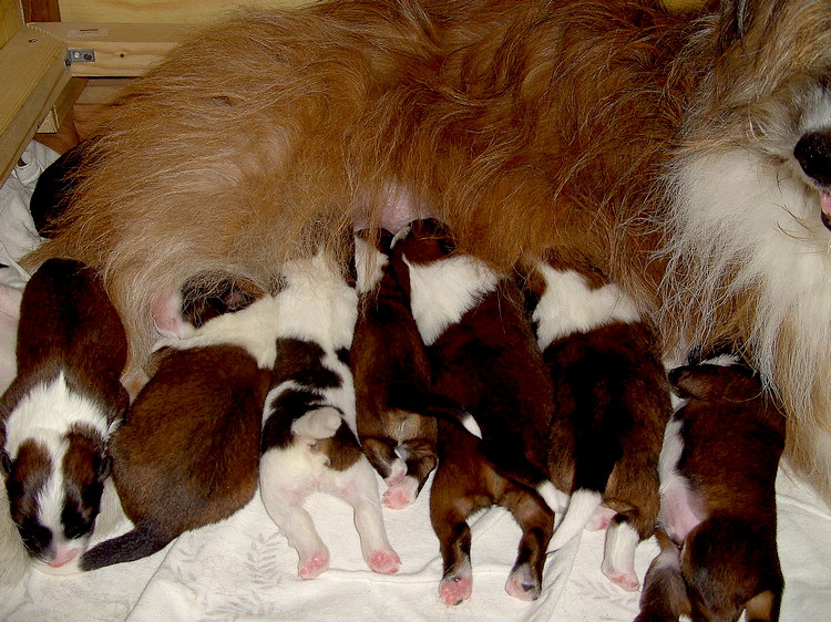 Mal wieder kommt es anders als geplant. Erst hiess es, wir sollten wahrscheinlich Donnerstag zum Deckrüden fahren, aber Dienstag doch zur Vorsicht noch einen Bluttest machen. Das Ergebnis war dann halt, jetzt fahren. Da es sich so kurzfristig ergeben hat, sind wir erst um 15.30 Uhr los gekommen und haben dann für 290 km sechs Stunden gebraucht. Davon haben wir drei Stunden im Stau gestanden. Mein Dank noch mal an die Rüdenbesitzerin, das wir um 21.30 Uhr noch kommen durften. Zum Glück mochten Barney und Ginger sich und sie waren sich relativ schnell einig. Meinen besonderen Dank gilt aber noch einer sehr lieben Züchterfreundin. Sie hatte uns die Unterkunft empfholen und eigentlich wollten wir noch zusammen was Essen. Da es dann doch so spät wurde war das mit dem gemeinsamen Essen nichts geworden. Sie hatte aber auf uns gewartet und dafür gesorgt das wir noch so spät was zu essen bekamen. Die Geburt verlief wie schon bei den Ersten reibungslos. Es sind 7 Rüde und 4 Hündin davon sind 4 Hunde rau und 7 Hunde sind glatt geworden