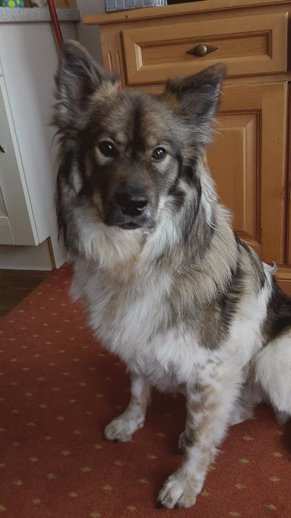 Bemerkung des Zuchtrichters: Temperamentvoller Rüde mit gutem Sozialverhalten gegenüber Artgenossen und Rüden. Sehr enge Bindung an die Besitzerin. Er zeigte freudiges Apportierverhalten und ein ausgewogenes Beutespiel. Eleganter Elo Rüde mit schönem Kopf. Fell bis auf die Farbe fast ideal.